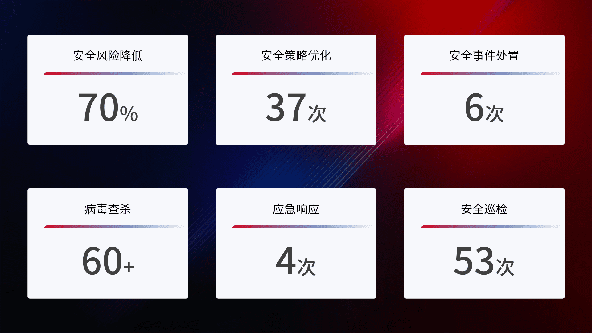 提供全面的安全事件报告体系,,,,包括处置报告、、、周报、、、季度和年度总结,,,,结合持续监控,,,,帮助客户深入了解网络安全状况。。。。