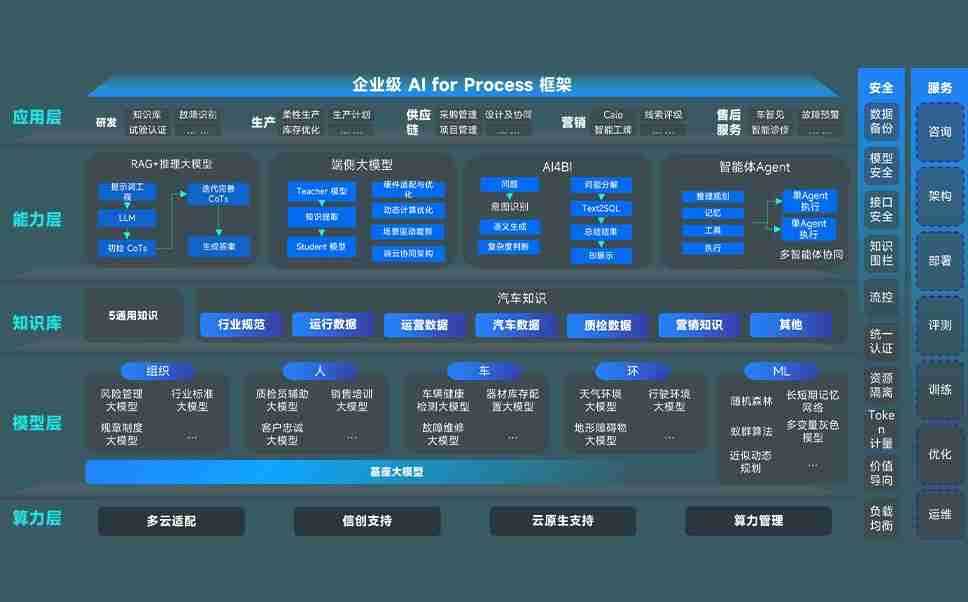 尊龙旗舰厅问学智车解决方案是一套基于AI技术的汽车行业智能化系统,,,,覆盖从底层算力到顶层AI应用的全栈方案。。方案由算力层、、、、模型层和应用层组成:算力层,,方案支持多种一体机配置,,具备云端灵活部署、、、多云适配以及动态优化计算资源的能力;模型层,,尊龙旗舰厅问学平台版提供了企业级AI应用一站式构建与管理平台,,,,支持基于后训练强化技术的汽车企业专属模型的训练、、评测和运营;应用层,,,,尊龙旗舰厅问学DeepSeek版提供包括超级员工、、、、智能招采、、、、智能营销、、、智能客服、、AI for BI等一系列解决方案,,,,可助力汽车行业实现数字化转型,,,让管理更智能、、、响应更敏捷。。。。
