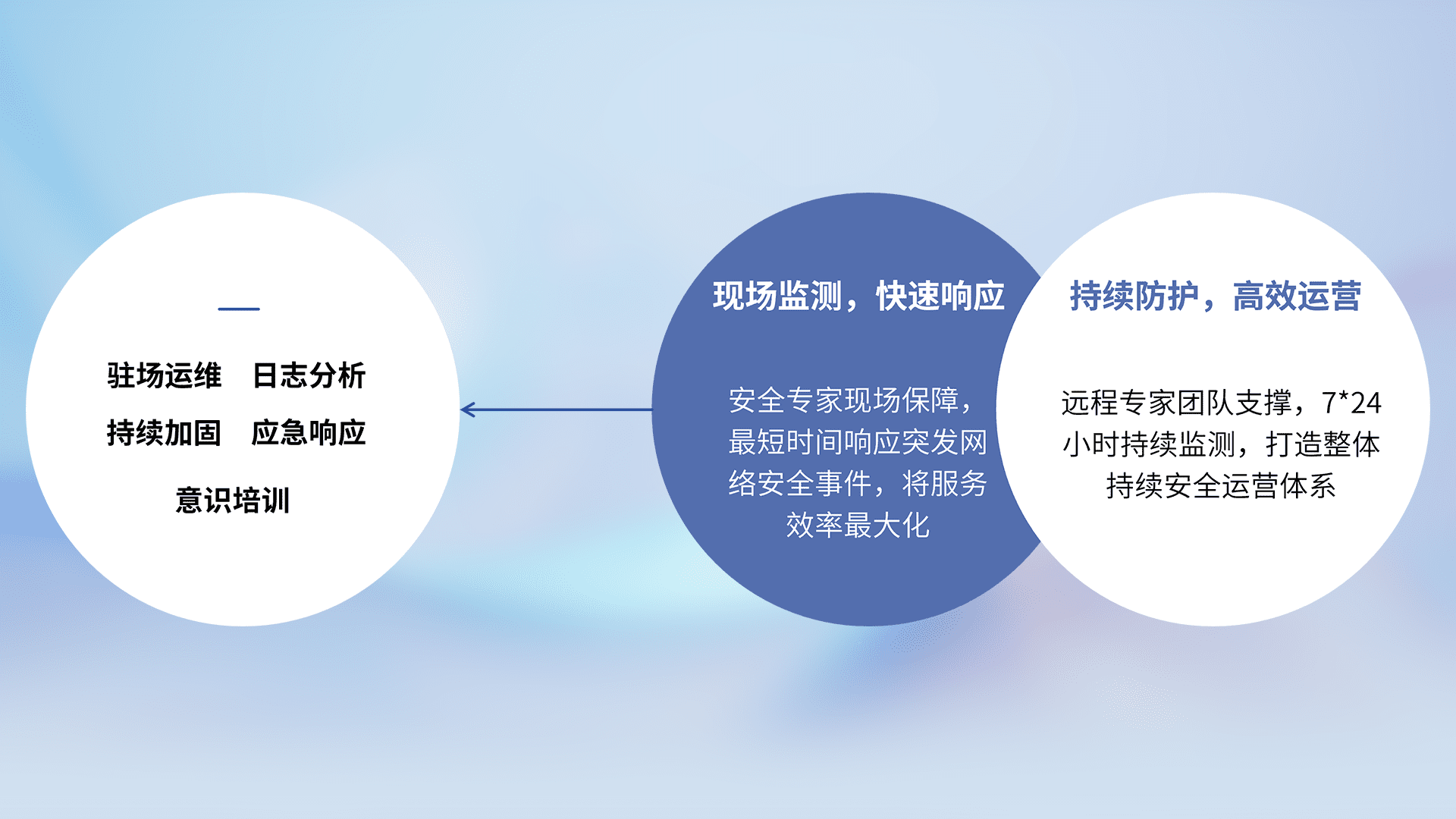 7X24小时持续监测安全事件,保持安全策略有效性,降低资产脆弱性风险,,精准拦截黑客攻击,,减少被黑客利用的机会,,,,第一时间遏制,,降低损失。。。